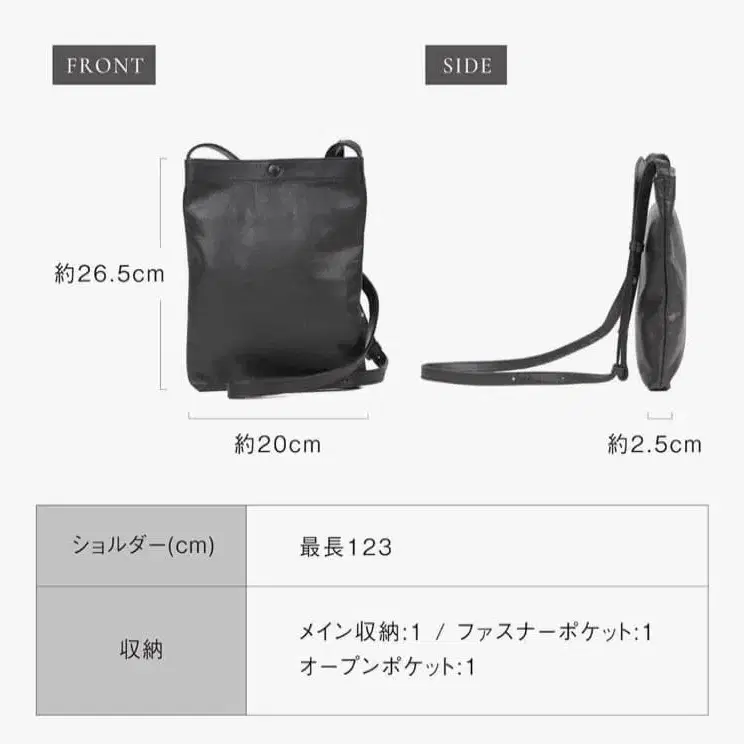 스마트폰, 지갑, 수첩 등 필수적인 수납력을 갖춘 천연 가죽 숄더백입니다. A5 사이즈 대응으로, 출퇴근, 통학, 외출에도 안성맞춤입니다.