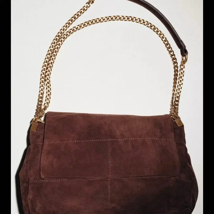 다크 브라운 스웨이드 소재의 플랩 숄더백입니다.