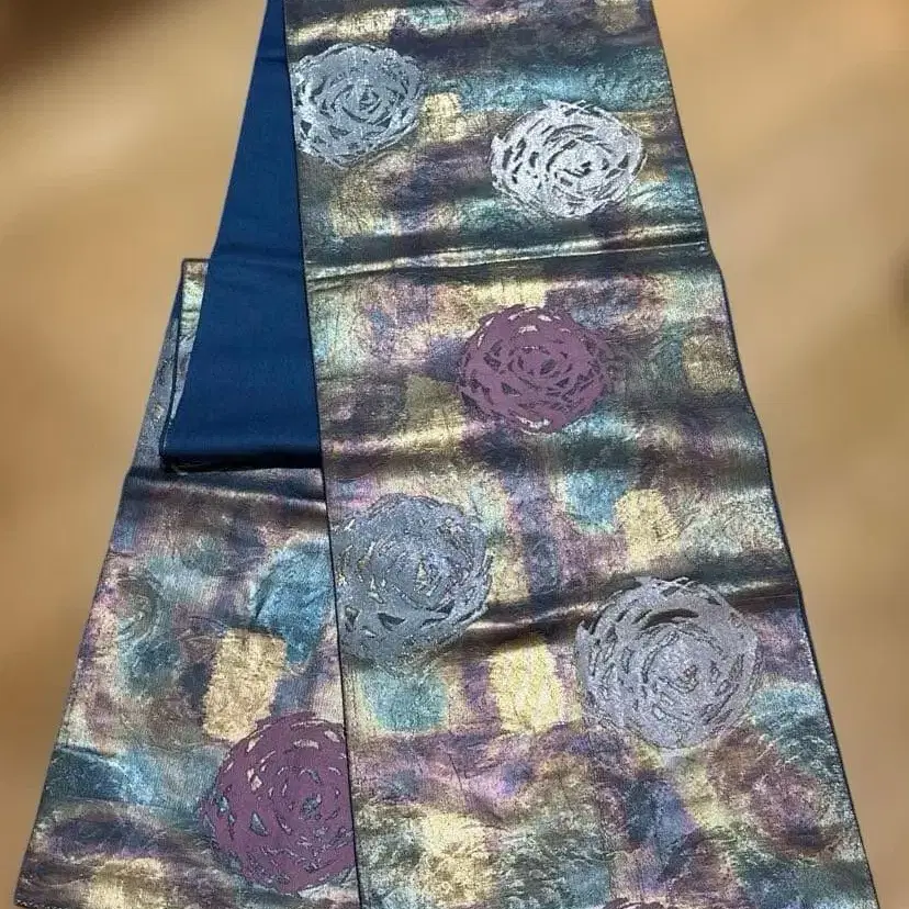 순수 실크 육통 무늬 블루 꽃무늬