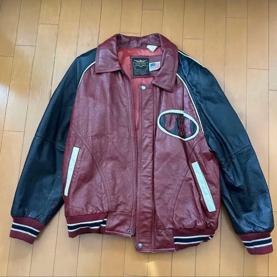 크림슨과 블랙 레더 재킷, USA 패치 부착, 애슬레틱스 스타일. - 색상: 크림슨과 블랙 - 디자인: USA 패치 부착 - 스타일: 애슬레틱스 스타일 - 소재: 가죽 - 소매: 긴팔 방문해 주셔서 감사합니다. 피그스킨 가죽 재킷입니다. 원래 피그스킨은 단단한 편이지만, 오일을 정기적으로 발라주어 부드러워졌습니다. 소매와 밑단의 리브는 문제가 없습니다. 가죽 자체는 아직 튼튼하므로 착용에는 문제가 없습니다. 물론 흠집 등은 있지만, 가죽 재킷이므로 멋으로 봐주세요. 레더 재킷 Schott 루스 레더 구제 의류 vintage