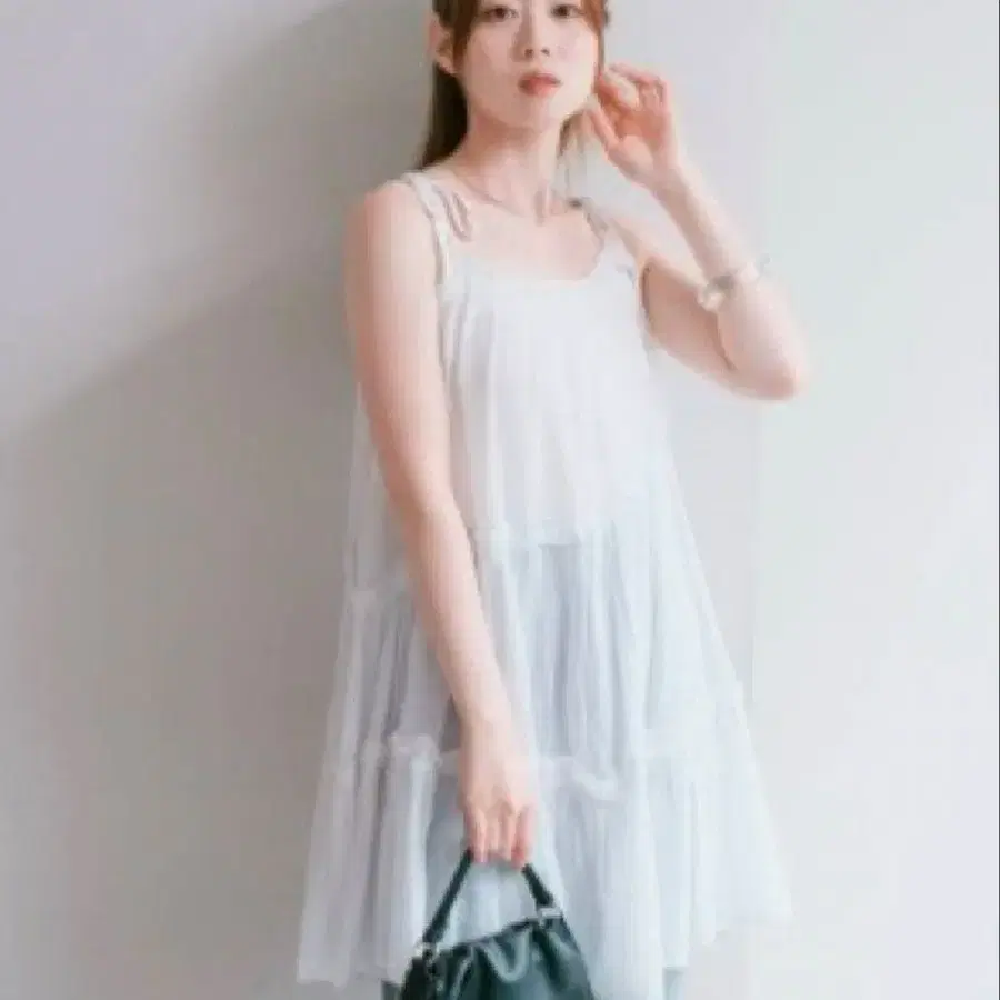 [ 완판 색상 ] LIZ LISA 프론트 티어드 쉬폰 원피스 화이트 양산