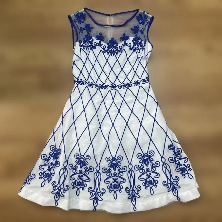 화이트/블루 자수 슬리브리스 원피스