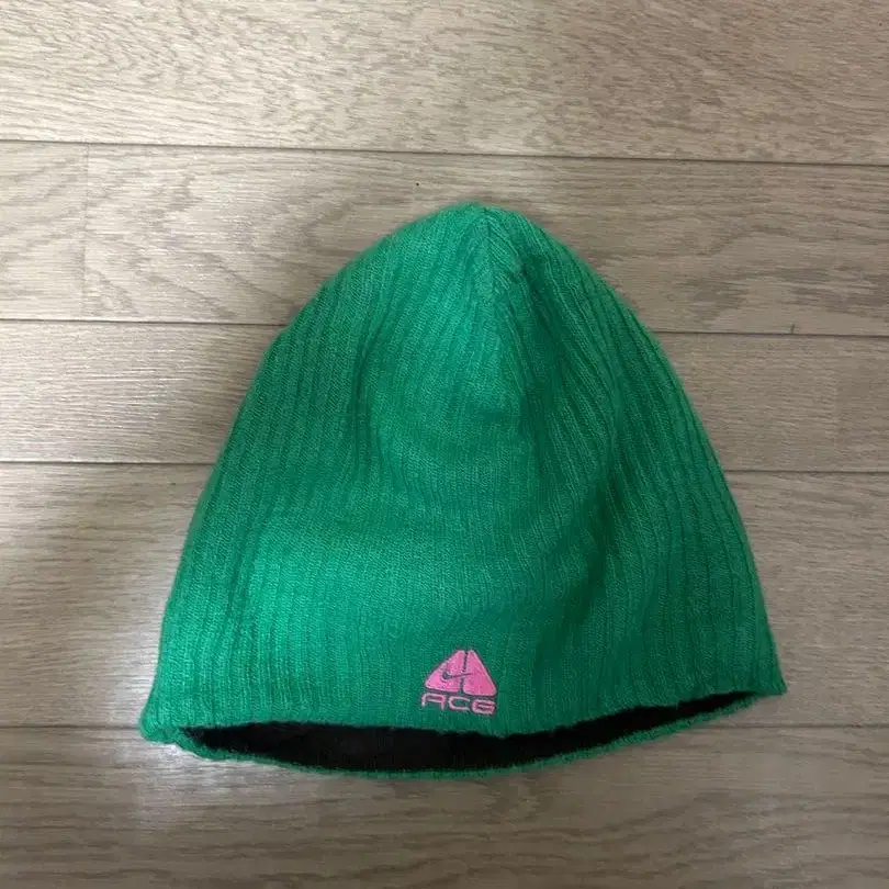 나이스 배색 비니입니다. 에메랄드 그린과 핑크. 안쪽은 브라운과 핑크로 되어 있습니다.