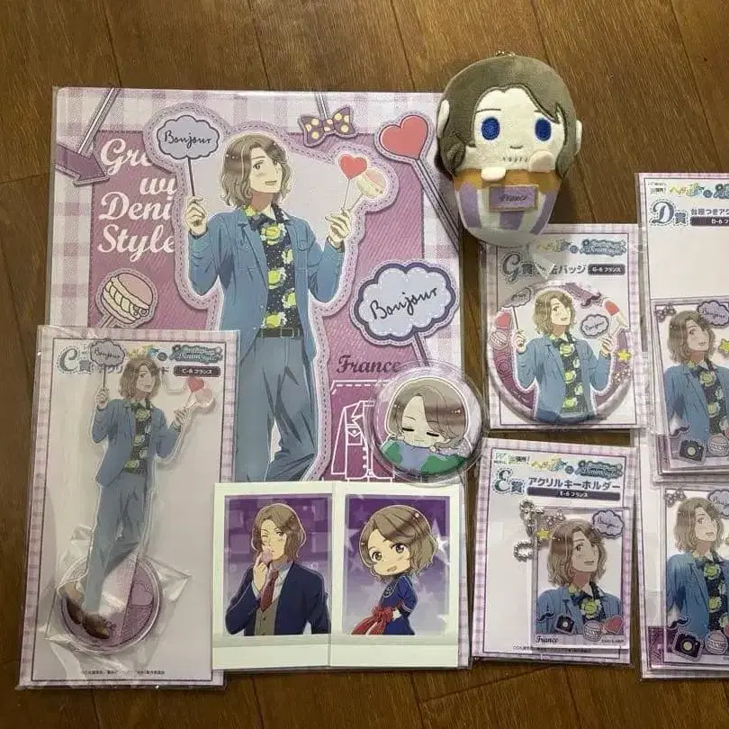 캔 배지, 아크릴 스탠드, 키링이 움직이지 않도록 마스킹 테이프로 고정했습니다.