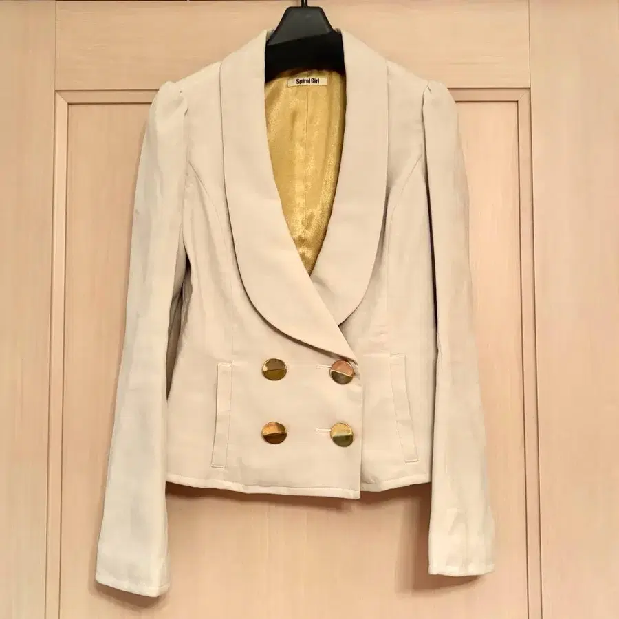 SPIRALGIRL의 벨로아 테일러드풍 자켓입니다. 안감은 골드 새틴이며, 뒷면은 프릴 디자인으로 되어 있습니다. 골드 버튼, 소매 끝은 플레어 디자인입니다. ● 사이즈: 택 표기 M ● 소재: 이미지 참조 ● 상태: 2~3회 착용했으나 얼룩, 올풀림 등 없이 거의 새상품급의 미품입니다. ● 기타 주의 사항: 클리닝 후, 자택 아파트에서 보관했습니다. 세부 디자인 등은 사진으로 확인해 주세요. 사이즈 - M 컬러 - 베이지 계열 패턴 - 무지