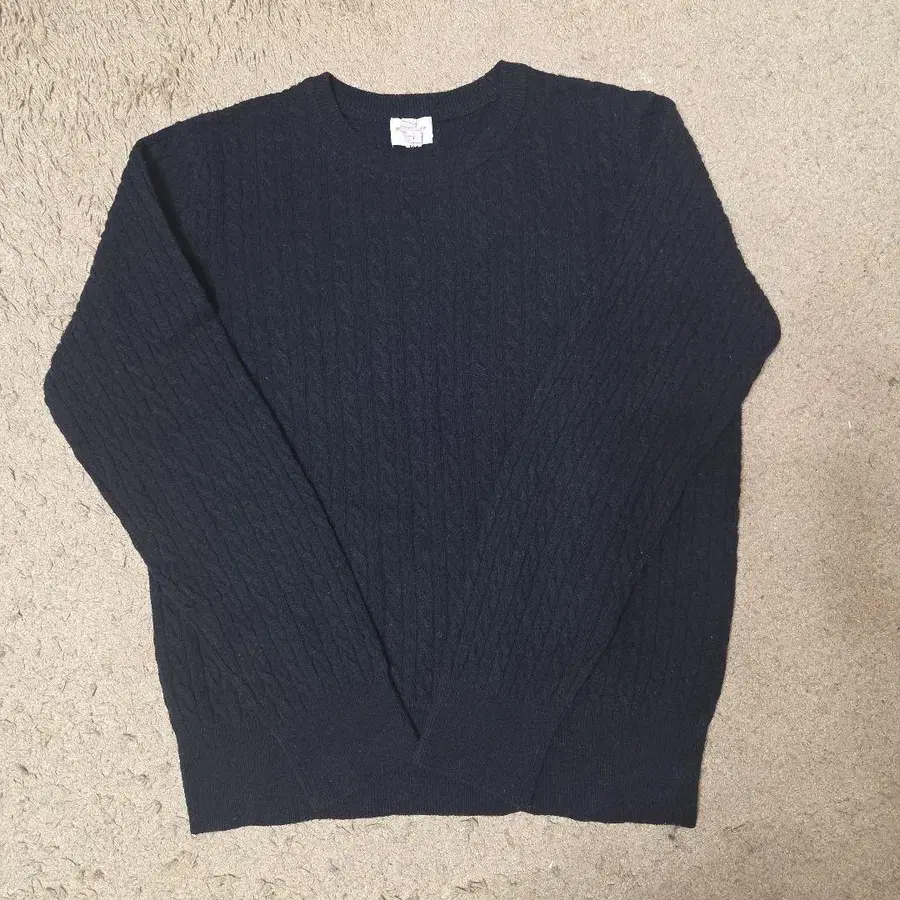 네이비 아란 패턴 니트, 유행 타지 않는 디자인으로 오래 입을 수 있습니다.
