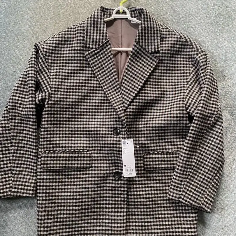 새상품 네이비 계열 체크 오버 사이즈 체스터 코트