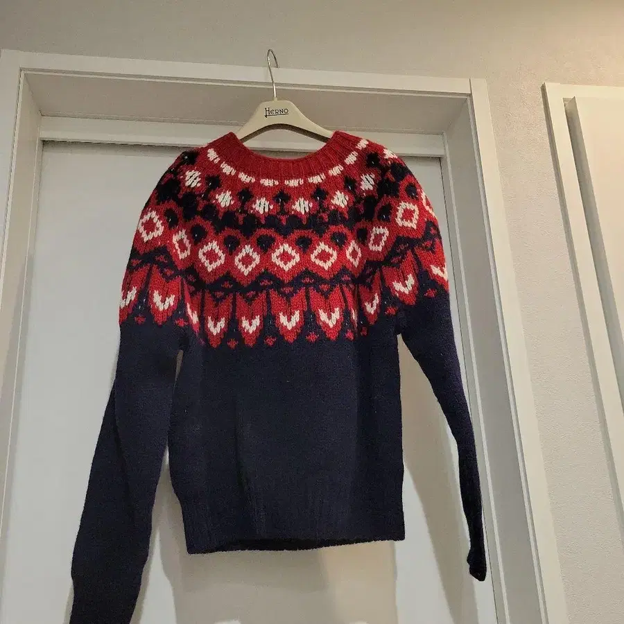Harley 제조 Scotland 빨간색과 네이비색 노르딕 무늬 울 긴팔 스웨터. 짜임이 촘촘하여 따뜻합니다. - 색상: 빨간색/네이비 - 디자인: 노르딕 무늬 - 소매 길이: 긴팔 - 소재: 울 혼방 #Harley #Scotland 방문해 주셔서 감사합니다.