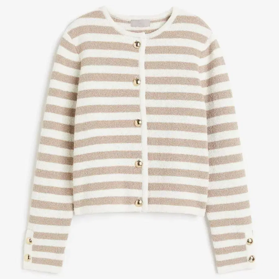 H&M 니트 가디건 보더 베이지 골드 버튼 니트 자켓