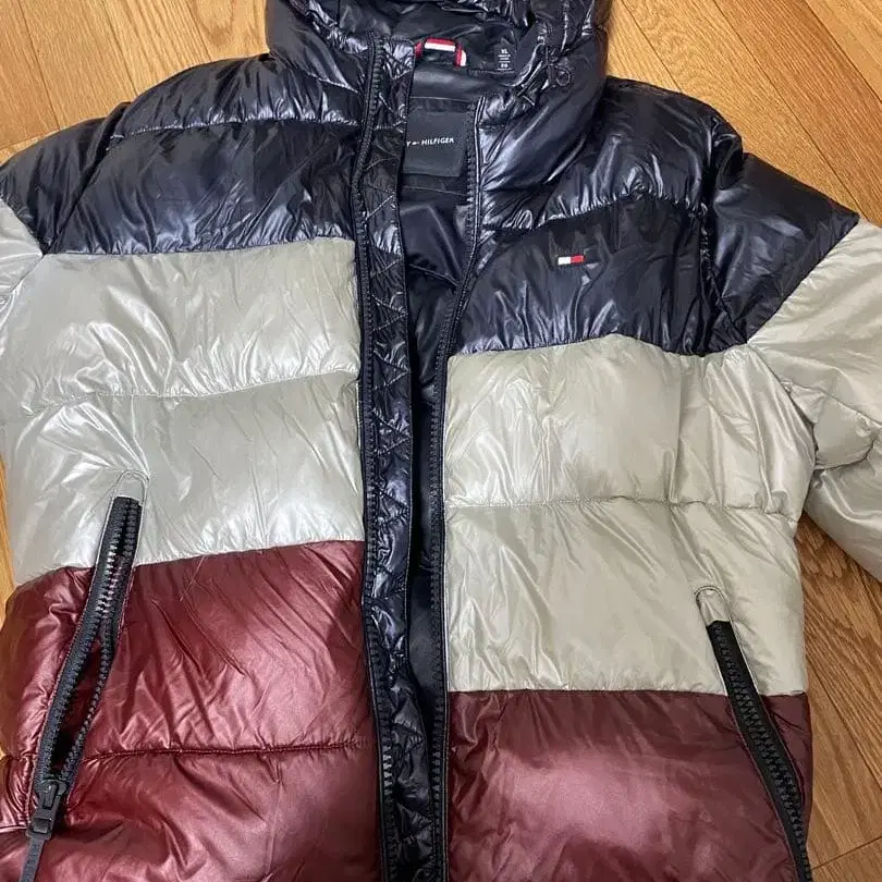 타미힐피거의 XL 사이즈 다운 자켓, 스타일리시한 색감과 로고가 특징. - 브랜드: TOMMY HILFIGER - 색상: 블랙/그레이/빨간색 - 사이즈: XL - 로고: 타미힐피거 로고 방문해 주셔서 감사합니다. 사이즈 - XL(LL)