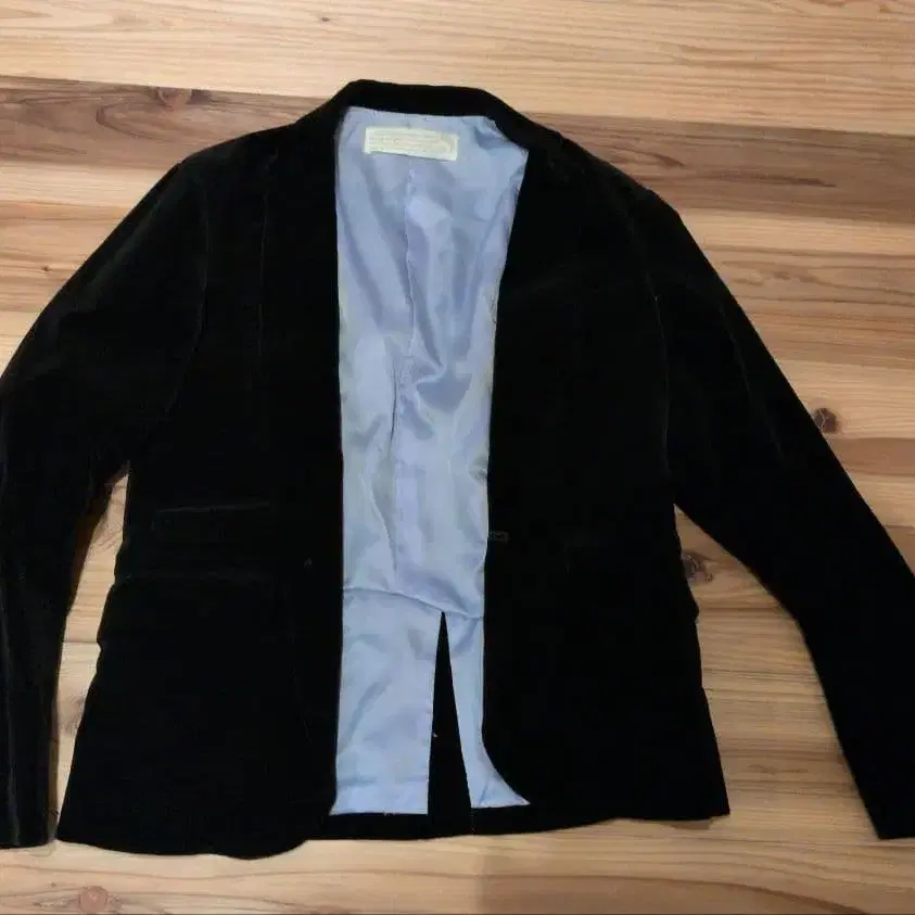 자동 번역되었어요. 원문보기고급스러운 남성용 블랙 벨벳 테일러드 자켓, 라이트 블루 안감이 특징입니다.