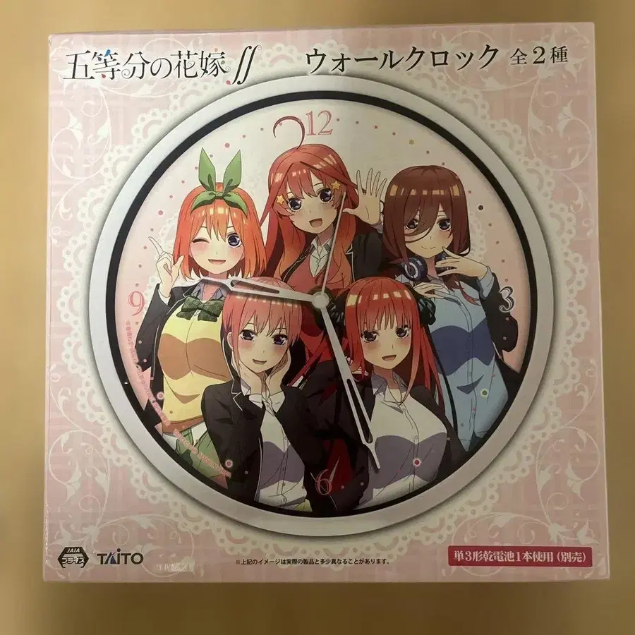 5등분의 신부 캐릭터가 그려진 약 25cm의 벽시계, 디자인 A와 B 2종류 중에서 선택할 수 있습니다. - 디자인: 5등분의 신부 벽시계 - 사이즈: 약 25cm - 디자인: 디자인 A와 디자인 B 2종 - 제조사: TAITO 방문해 주셔서 감사합니다. 타이틀 - 5등분의 신부