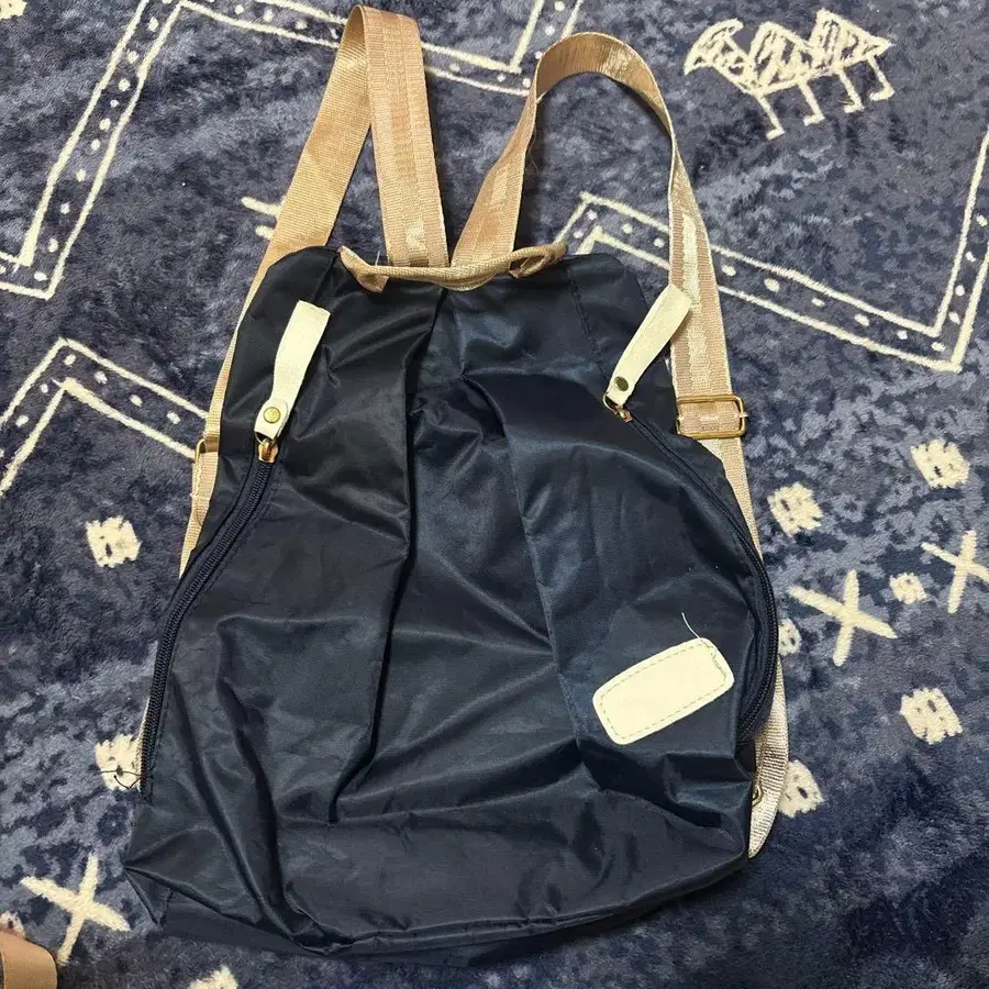 심플한 디자인의 블랙 나일론 백팩. - 색상: 블랙 - 스트랩 색상: 베이지 - 내부 소재: 나일론 - 지퍼 유무: 있음 - 디자인: 심플 방문해 주셔서 감사합니다.