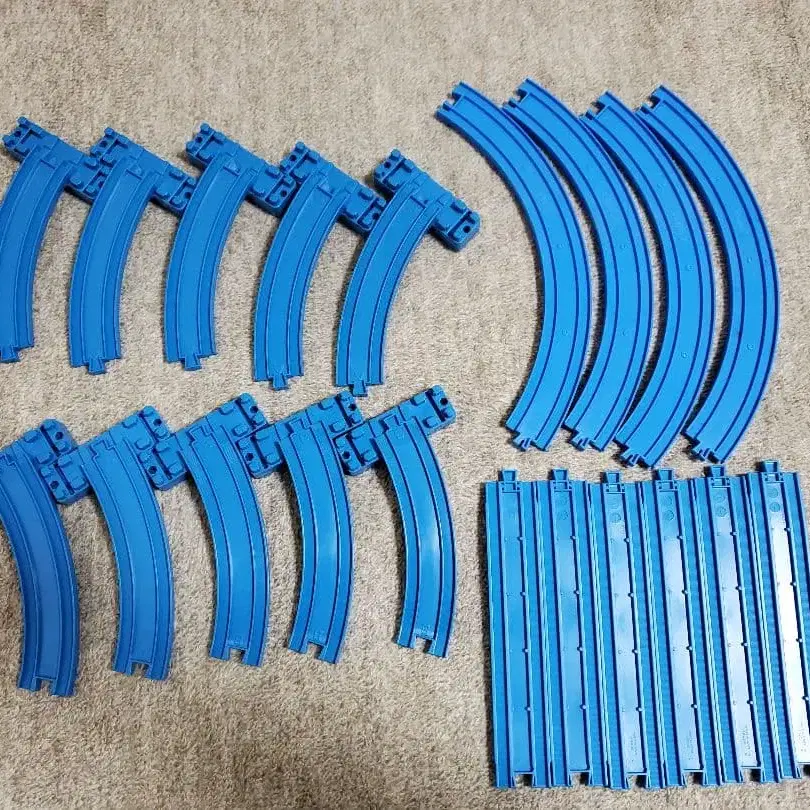 다양한 파란색 프라레일용 커브 레일과 직선 레일 세트. - 색상: 파랑 - 타입: 레일 - 수량: 다수 (커브 레일 및 직선 레일) 방문해 주셔서 감사합니다.