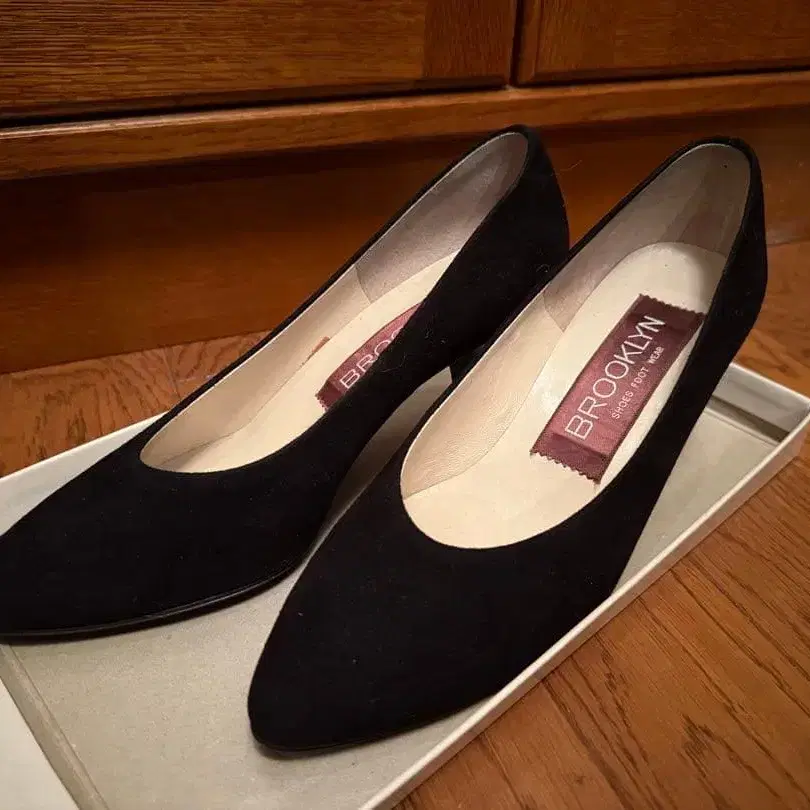 스웨이드 펌프스 23.5cm 힐 7cm 블랙 컬러 신발 밑창에 약간의 흠집이 있지만, 거의 신은 흔적이 없어 새상품으로 보입니다. 언제 구매했는지는 알 수 없다고 합니다. 신고 다니기 편할 것 같습니다. Brooklyn 브루클린