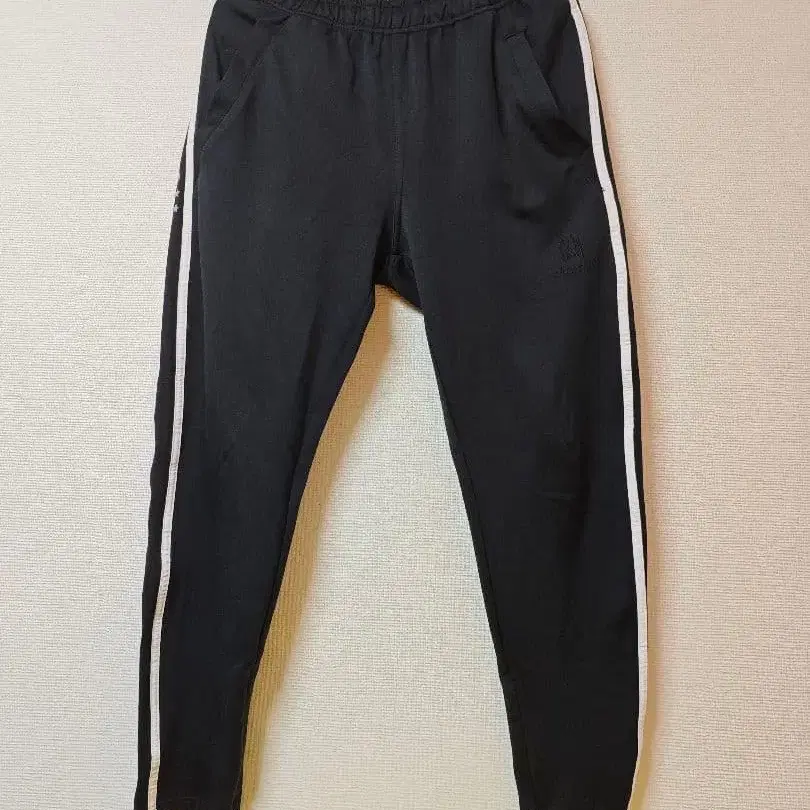 사이드 스트라이프 디자인의 블랙 조거 팬츠입니다. 지퍼 포켓이 있어 기능성도 갖추고 있습니다.