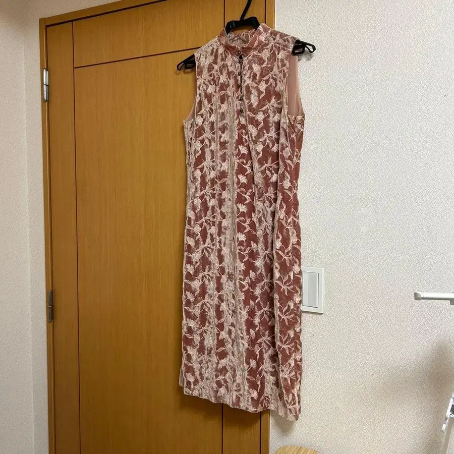 NATURAL BEAUTY BASIC에서 어머니께서 약 25년 전에 구매하신 벨로아 드레스입니다. 라이트 핑크 바탕의 벨로아에 고급스러운 꽃무늬 자수가 놓인 사랑스러운 디자인입니다. 슬릿도 있습니다. ⚘ 소재 사진 9번째 장을 참조해 주세요. 안감은 전체적으로 있습니다. ⚘ 사이즈 기장 100cm 어깨 너비 32cm 허리 80cm ※ 신장 162cm가 착용했을 때 무릎을 덮는 정도의 길이입니다. ⚘ 상태 클리닝 이후, 집 옷장 안에서 소중히 보관했습니다. 눈에 띄는 흠집이나 얼룩 없이 아직 충분히 착용 가능합니다.
