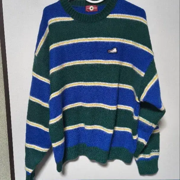 그린과 파랑의 스트라이프 디자인 컨버스 스웨트 셔츠. - 브랜드: 컨버스 - 색상: 그린/파랑/화이트/옐로우 컬러 스트라이프 - 디자인: 스웨트 셔츠, 크루넥 - 특징: 가슴 부분 로고 자수 - 스타일: 캐주얼 방문해 주셔서 감사합니다.