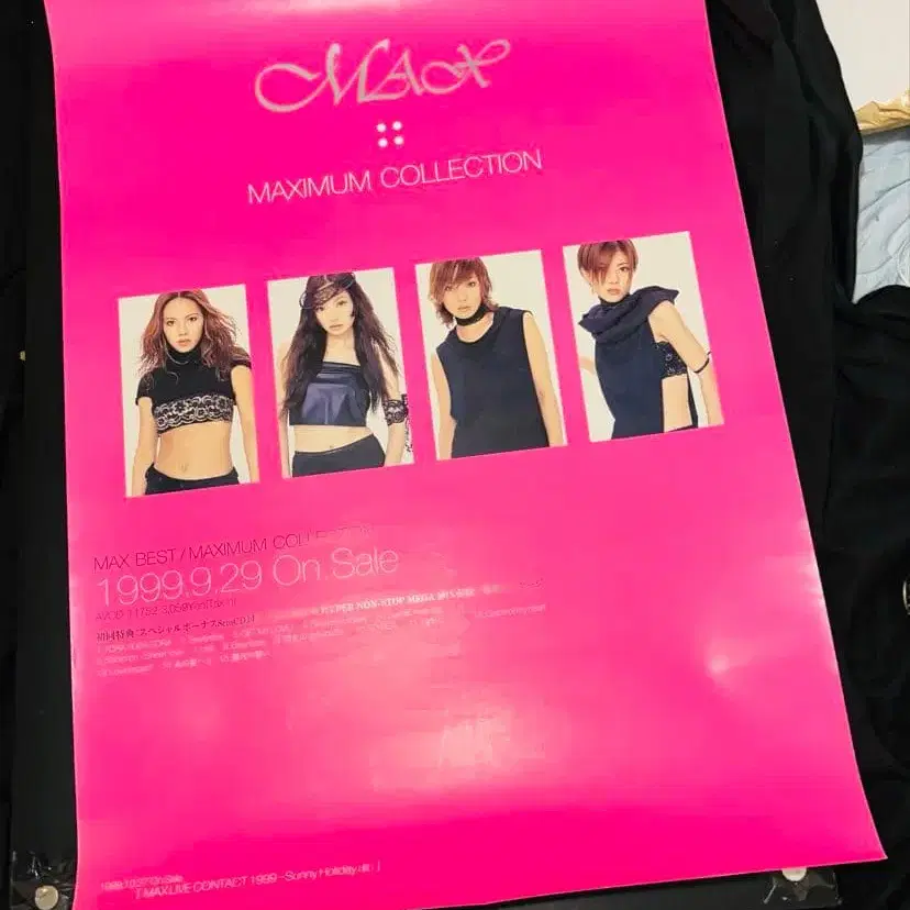 핑크색 배경에 모델 사진이 특징인 MAXIMUM COLLECTION 포스터. - 브랜드: MAX - 컬렉션명: MAXIMUM COLLECTION - 출시일: 1999년 9월 29일 - 디자인: 핑크색 배경에 모델 사진 5장 방문해 주셔서 감사합니다. B2 포스터 (51.5cm)x(72.8cm) 빈티지 상품이므로 이미지로 판단해 주세요. 포스터 여러 개 구매 시 1000엔 할인해 드립니다. B2 Poster (51.5 cm x 72.8 cm) 19.7 x 27.8 inches This is a vintage item, so please judge its condition based on the photos. If you purchase multiple posters together, I will give you a 1,000 yen discount. This is a genuine vintage poster. Please check photos for condition (minor age wear may be present