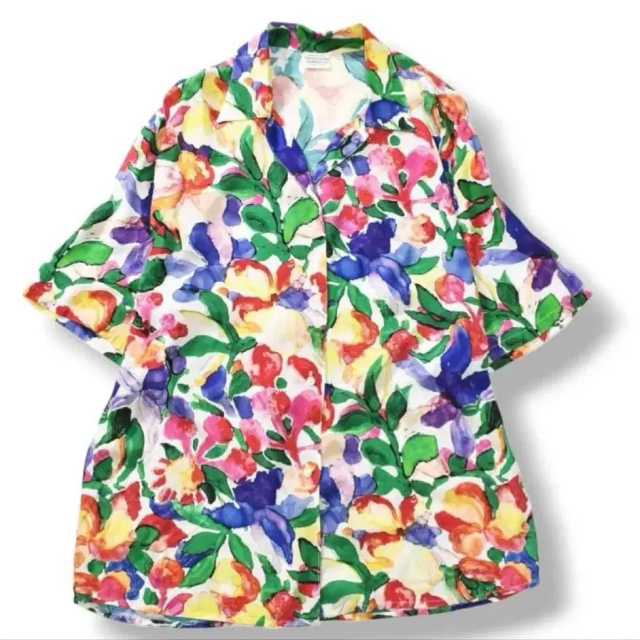 [고급] 이탈리아제 베네통 반팔 레이온 셔츠 꽃무늬