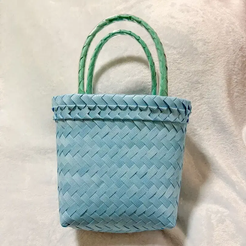 스카이블루 색상의 뜨개질 미니 백, 그린 컬러 핸들 부착. 2025년 6월 구매. 외부 미사용입니다. 그대로 서랍에 보관했습니다. - 색상: 스카이블루 - 핸들 색상: 그린 컬러 - 소재: 뜨개질 소재 - 디자인: 미니 백 - 스타일: 캐주얼 방문해 주셔서 감사합니다.