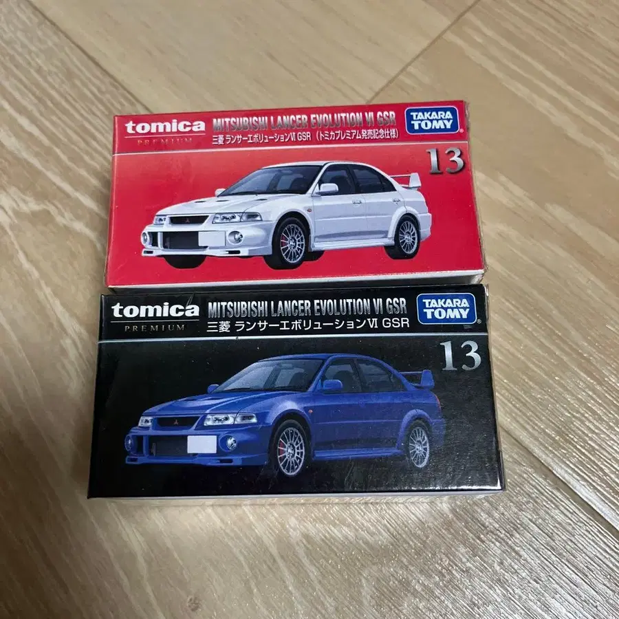 토미카 프리미엄 13 미쓰비시 랜서 에볼루션 VI GSR 2대 세트 [ 미사용 미개봉 새상품 ] - 모델명: 미쓰비시 랜서 에볼루션 VI GSR (토미카 프리미엄 출시 기념 사양) - 색상: 화이트 - 모델명: 미쓰비시 랜서 에볼루션 VI GSR (일반ver) - 색상: 블루 - 스케일: 1/61 낱개 판매 불가 자택 보관이므로, 이해하신 후 구매 부탁드립니다. 시리즈 - 토미카