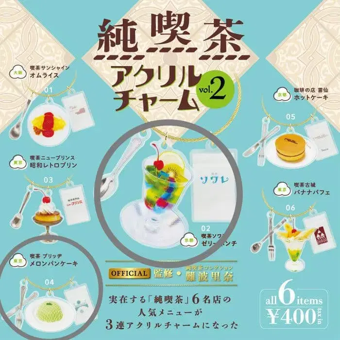 순 카페 아크릴 참 vol.2 02 카페 소와레 젤리 펀치〈교토〉 04 카페 브릿지 멜론 팬케이크〈도쿄〉 미사용 새상품 캡슐은 부속되지 않습니다. ■ 카페 소와레 젤리 펀치 프랑스어로 [ 연회 ] [ 멋진 밤 ] 을 의미하는 가게 이름. 교회를 이미지하여 만들어졌다는 공간은 파란색의 부드러운 빛으로 비춰지고 있습니다. 그런 로맨틱한 공간에서 맛보고 싶은 것은, 부드러운 탄산수에 5색의 젤리가 떠 있는 [ 마시는 보석 ] 의 젤리 펀치. ■ 카페 브릿지 멜론 팬케이크 [ 손님이 깜짝 놀랄 메뉴를 ] 이라는 2대째의 대접하는 마음에서 탄생한 멜론 팬케이크. 현재는 3대째가 그 마음을 이어받아, 원단의 배합이나 크림에 고집하여 맛있음도 파워 업. 멜론이 통째로 넘치는 감동의 컷을 꼭. 타이틀 - 순 카페 아크릴 참 키링 카테고리 - 가챠가챠 난바 리나 레트로 켄 엘리펀트