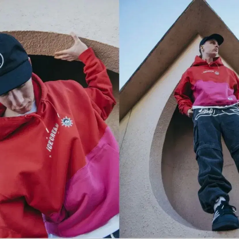 새상품 ICECREAM 레드 x 핑크 후드티 XL