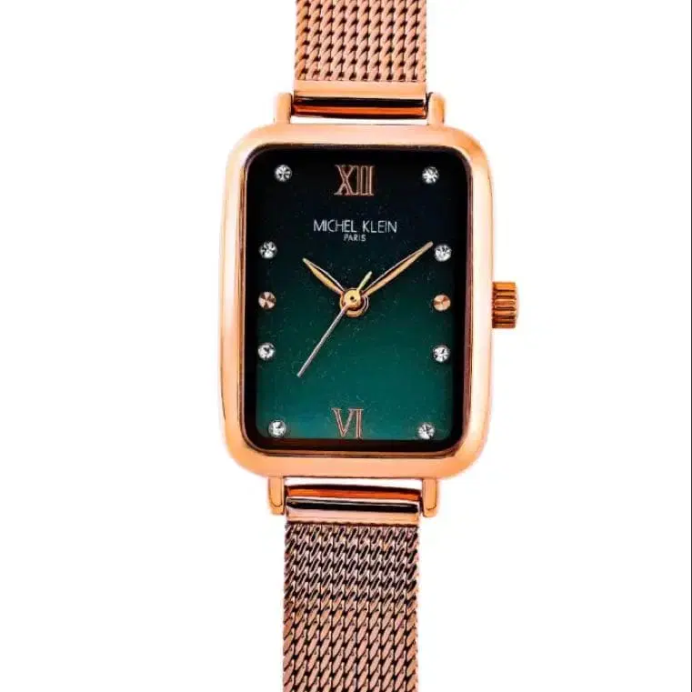 그린 다이얼에 다이아몬드풍 장식이 더해진 미쉘클랑의 엘레강트한 아날로그 손목시계입니다.