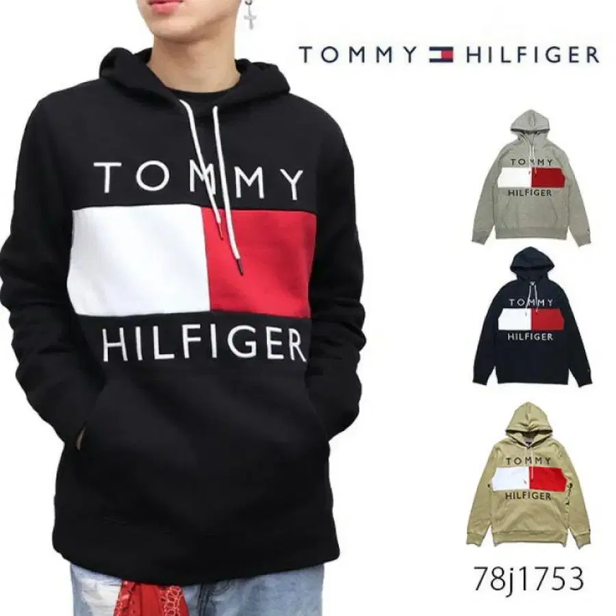 미사용 새상품 TOMMY HILFIGER 후드 부착 속기모 후드티