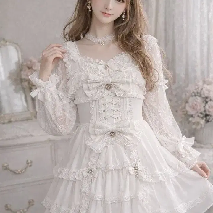 가슴 부분 허리의 리본, 목 부분의 끈은