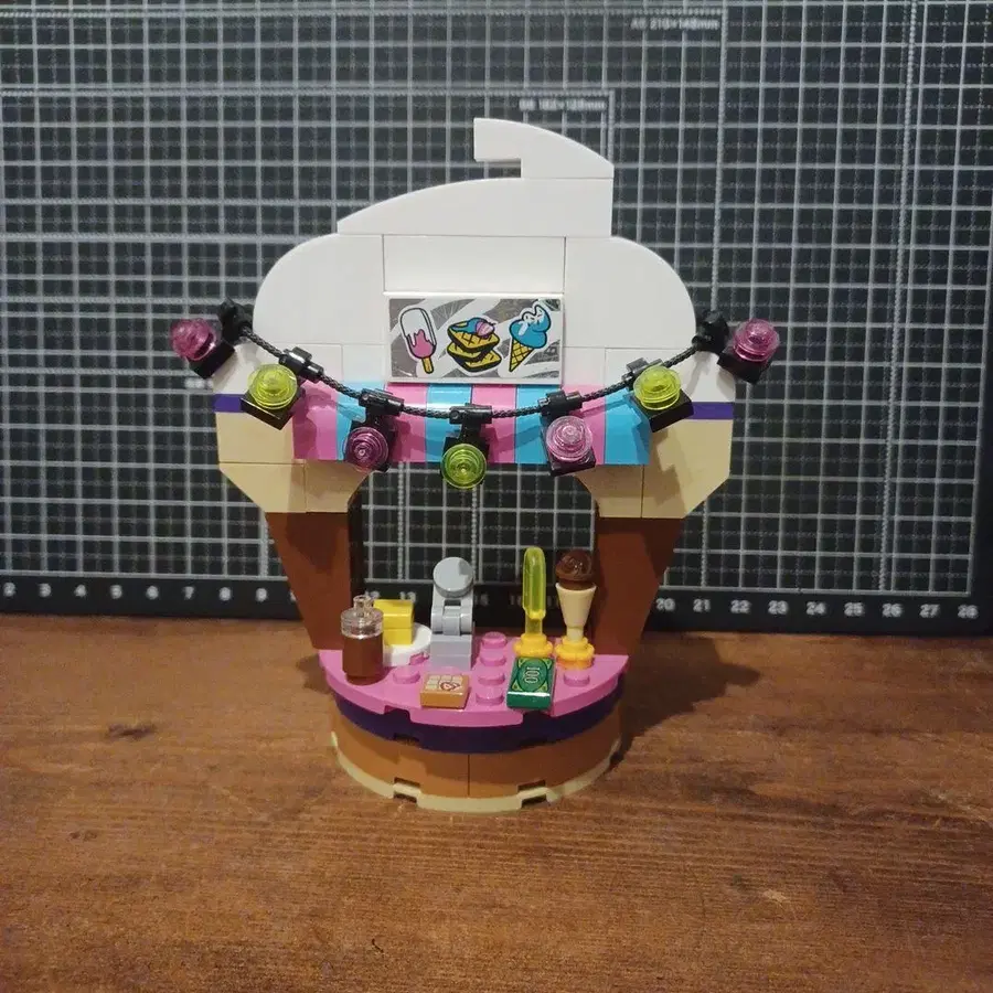 아이스크림 스탠드 레고 세트, 장식 라이트 포함으로 즐거운 디자인. - 사이즈: 약 10cm x 12cm ※ 발송 시 두께가 나오지 않도록 일부 분해하여 보내드립니다.