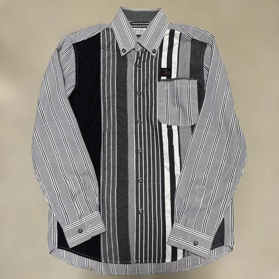 블랙과 화이트 스트라이프 디자인의 캐주얼한 코튼 셔츠.