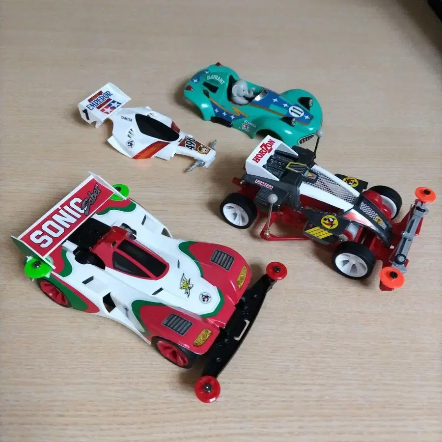 방문해 주셔서 감사합니다! 미니 사륜구동 호라이즌 소닉 세이버 + 바디 2세트입니다! ※ 작동 확인 완료 ※ 즉시 구매 OK입니다! ※ 낱개 판매, 네고 불가 ※ #미니사륜구동 #미니사륜구동호라이즌 #호라이즌 #소닉세이버 #미니사륜구동소닉세이버 #타미야 #코로코로코믹 #엠퍼러 #미니사륜구동스티커 #돌진4구로 #돌진군단 #렛츠앤고