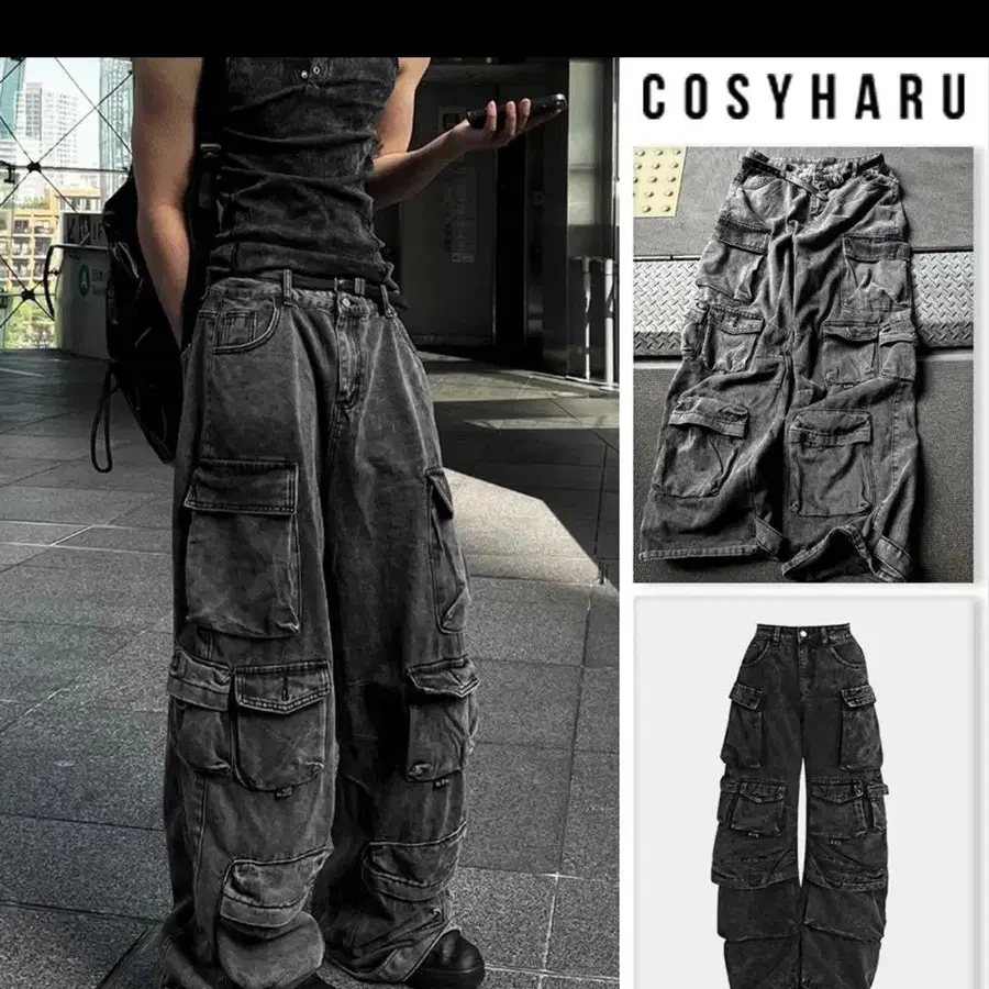 다크 그레이 카고 팬츠 멀티 포켓