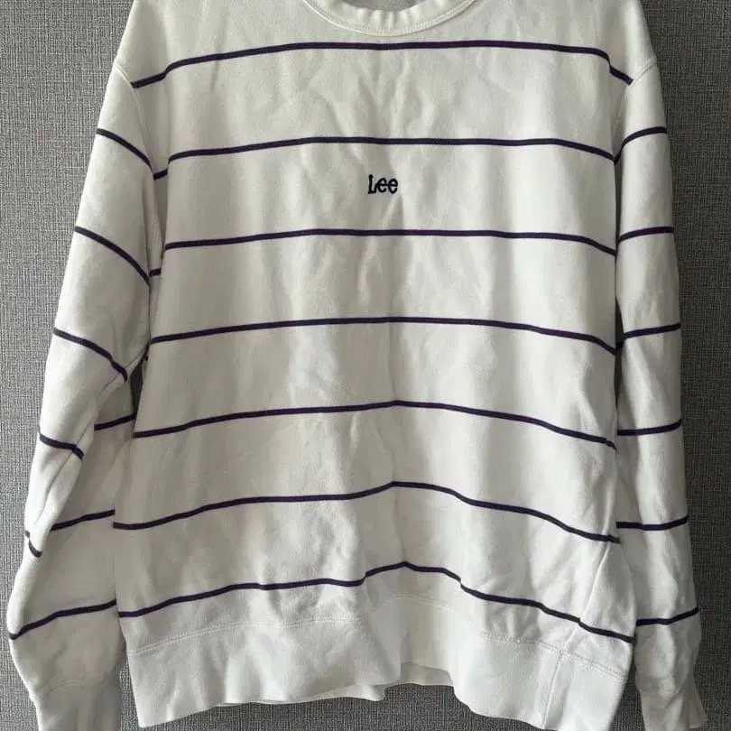 화이트와 퍼플의 스트라이프 디자인의 Lee 브랜드 맨투맨.
