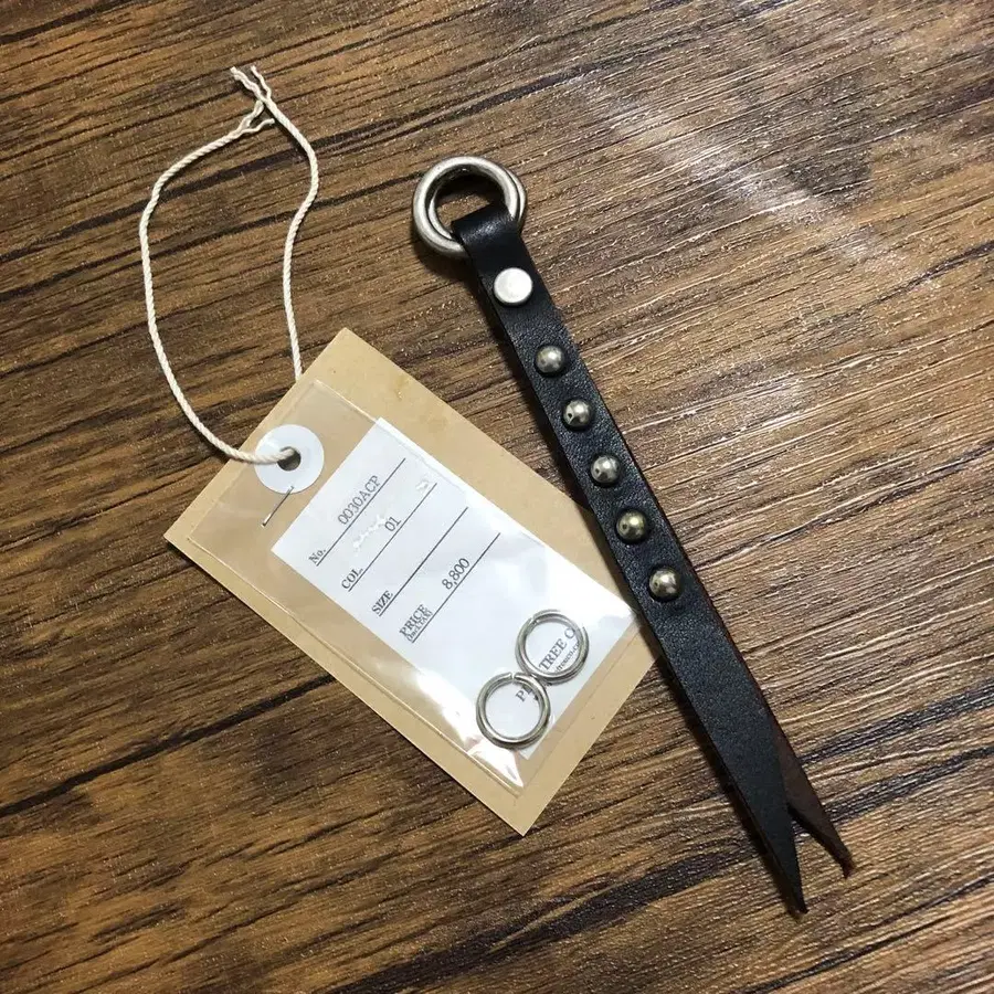 pine tree.co 차심 가죽 키링 BLACK /키홀더 키체인 leather 혁 잡화 스터드 calee 캐리 빈티지 CALEE 캐리