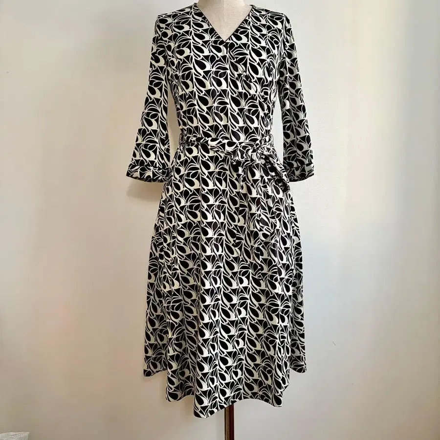 dee flavor 추상 패턴 7부 소매 랩 드레스 모노톤 모드