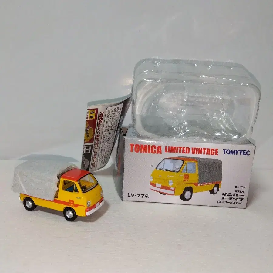 토미카 리미티드 빈티지 스바루 삼바 트럭 ( 도시바 서비스카 ) 사진이 전부입니다. 계속 미개봉 상태였으나 판매를 위해 개봉했습니다. 케이스에 손톱 자국은 없지만, 스크래치가 있습니다. 미니카는 좋은 상태라고 생각됩니다. 덮개를 감싸고 있는 종이는 열리지 않았습니다. 어떠한 개조도 없는 [완전 노멀 자동차]입니다. TOMICA의 리미티드 버전 LV-77, 옐로우 컬러와 빨간색 미니카, 투명 케이스 포함. - 모델명: LV-77 - 브랜드: TOMICA - 색상: 옐로우 컬러/빨간색 - 특징: 토미카 리미티드 빈티지 - 부속품: 투명 케이스 방문해 주셔서 감사합니다. 시리즈 - 토미카