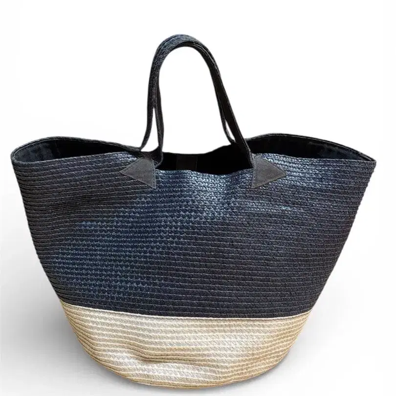 네이비와 화이트의 바이컬러 빅 토트백, 내부에 지퍼 포켓 있음. - 색상: 네이비와 화이트의 바이컬러 - 디자인: 빅 토트백 - 내부 구조: 지퍼 포켓 있음 - 소재: 뜨개질 소재 가볍고 수납력이 좋아 사용하기 편리합니다. 방문해 주셔서 감사합니다.