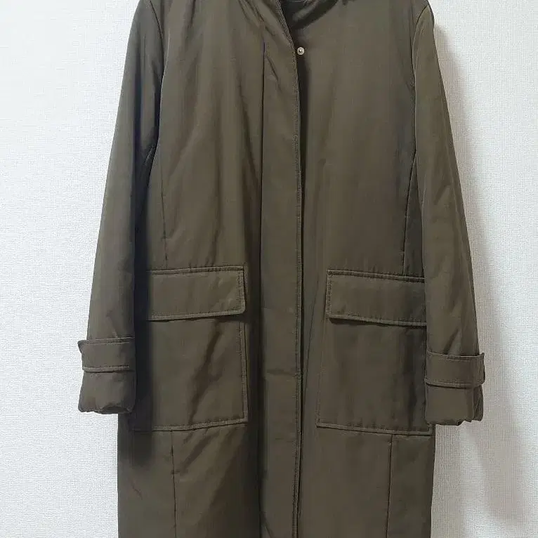 자유구 후드 부착 올리브색 롱 코트, 사이즈 38