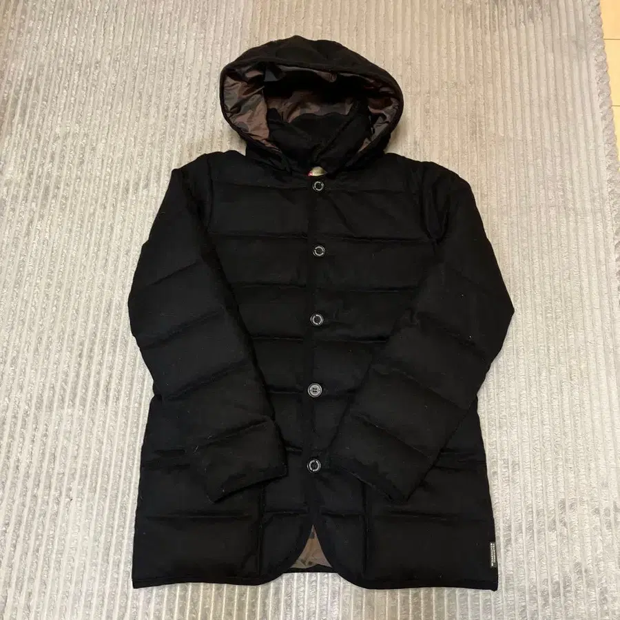 후드 부착의 심플한 블랙 다운 자켓, 사이즈 36.