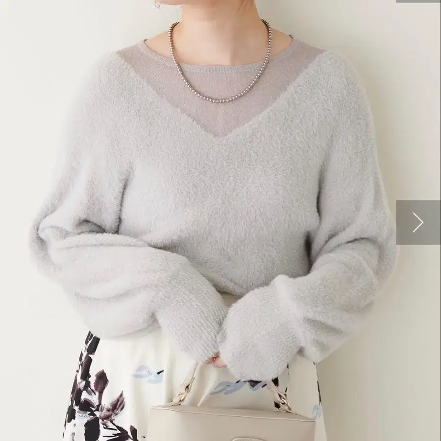 샤기 니트 x 시어 이너로 트렌디한 디자인.