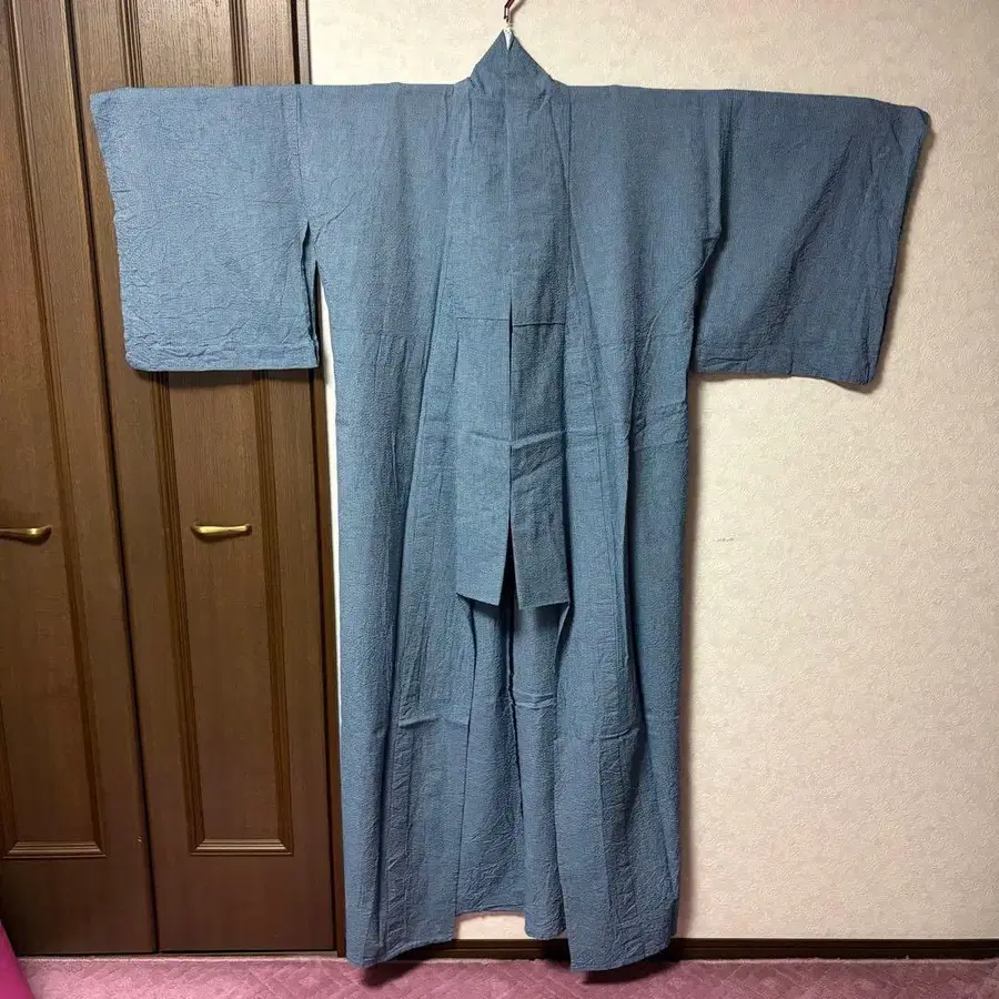 기모노 코몬 가슴 너비 넓은 빅 사이즈 시지라 직조? 파란색