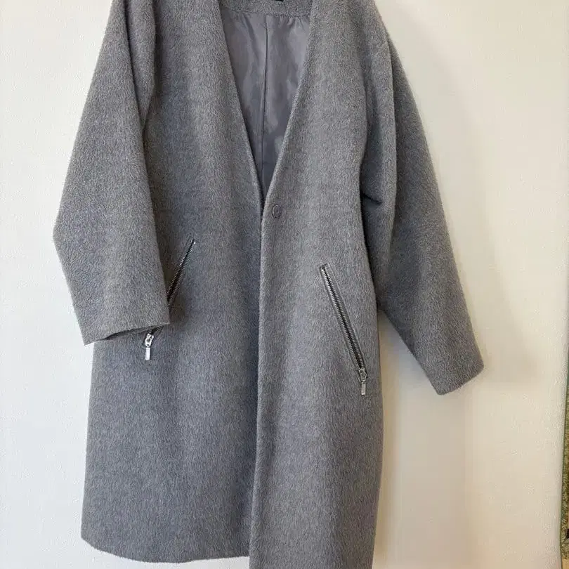 지퍼 포켓이 달린 심플한 그레이 롱 코트. - 색상: 그레이 - 디자인: 지퍼 포켓 부착 - 스타일: 롱 코트 방문해 주셔서 감사합니다.