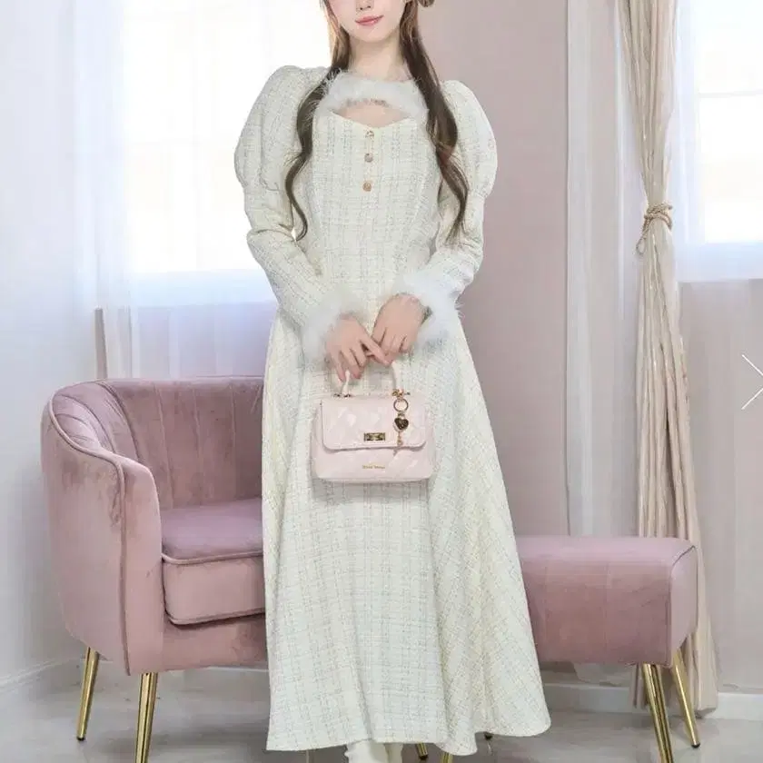 로제 뮤즈 트위드 홀리데이 드레스 화이트