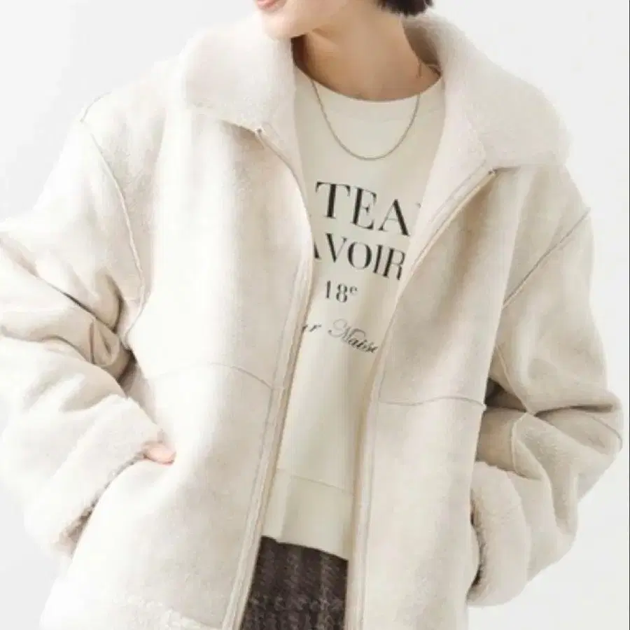 NERDY 컬리 퍼 자켓 아이보리 M 사이즈