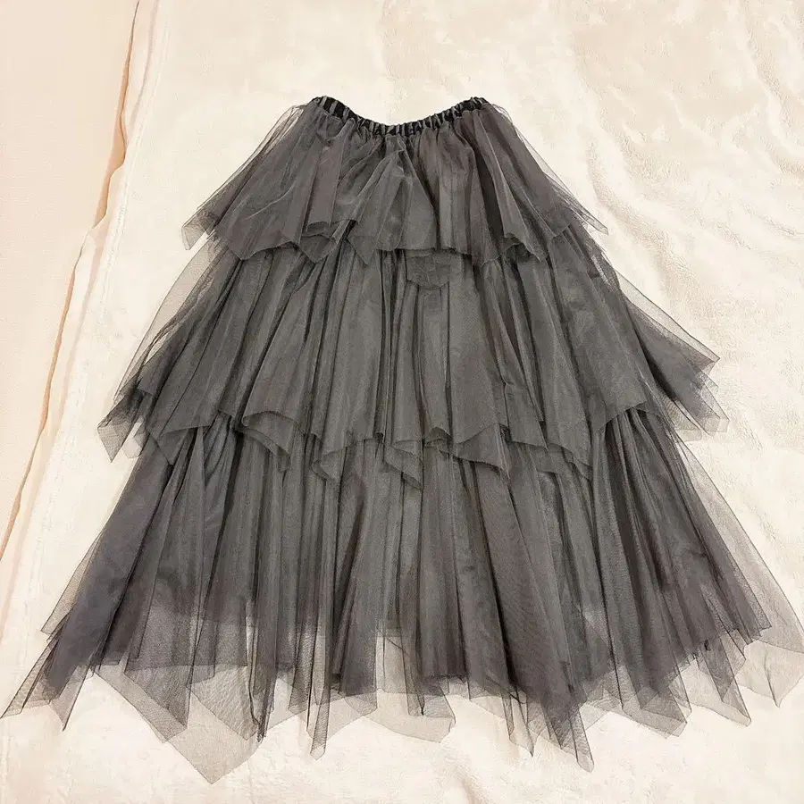 그레이 튤 티어드 롱 스커트