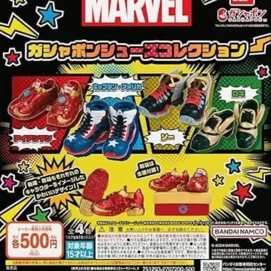 MARVEL 가샤폰 신발 컬렉션 전 4종 컴플리트 세트입니다. 아이언맨 캡틴 아메리카 토르 로키 낱개 판매, 가격 인하 불가 익명 배송으로 발송합니다. 초기 불량에 관해서는 미니북에 기재된 문의처로 연락 부탁드립니다.