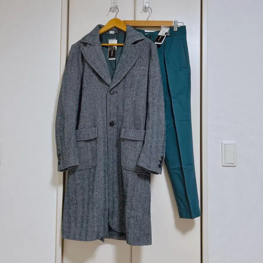 새상품 AXES-X 세트 코트 팬츠 그린 블루 묶음 판매 그린 파랑